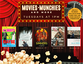 Every Tuesday at 1pm, come to the Spring Green Community Library for a sweet treat and a movie. Join us in March to watch some 2026 Oscar Nominees.